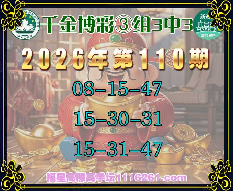主题: 111期:🏅福星高照【千金博彩✨③组3中3】连中上榜
