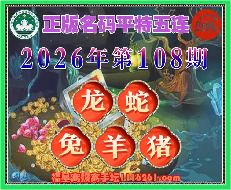 108期:〖正版名码〗 🤘平特五连🤘【龙蛇兔羊猪】开:00