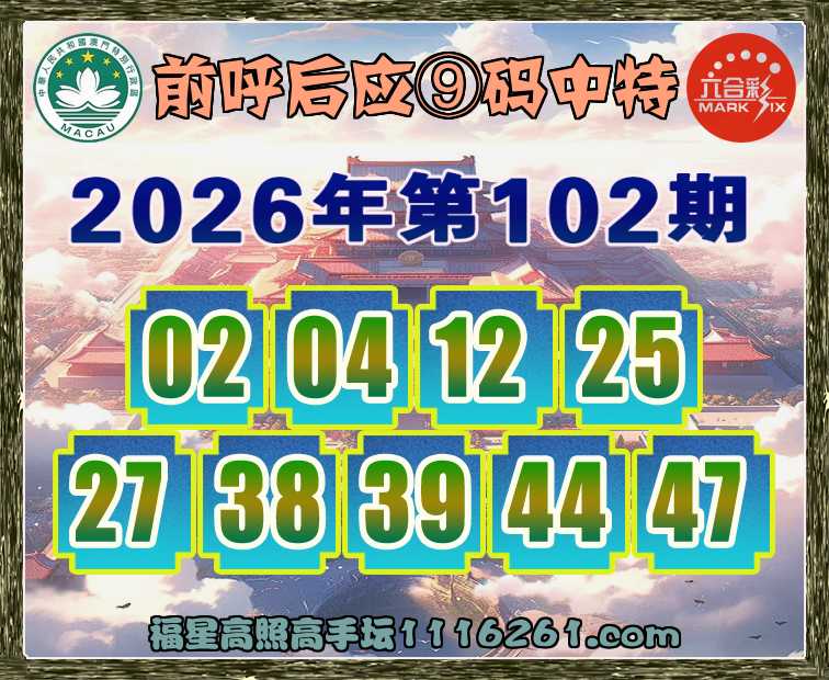 102期:【前呼后应】 👘⑨码中特👘开:20