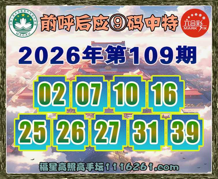 109期:【前呼后应】 👘⑨码中特👘开:16